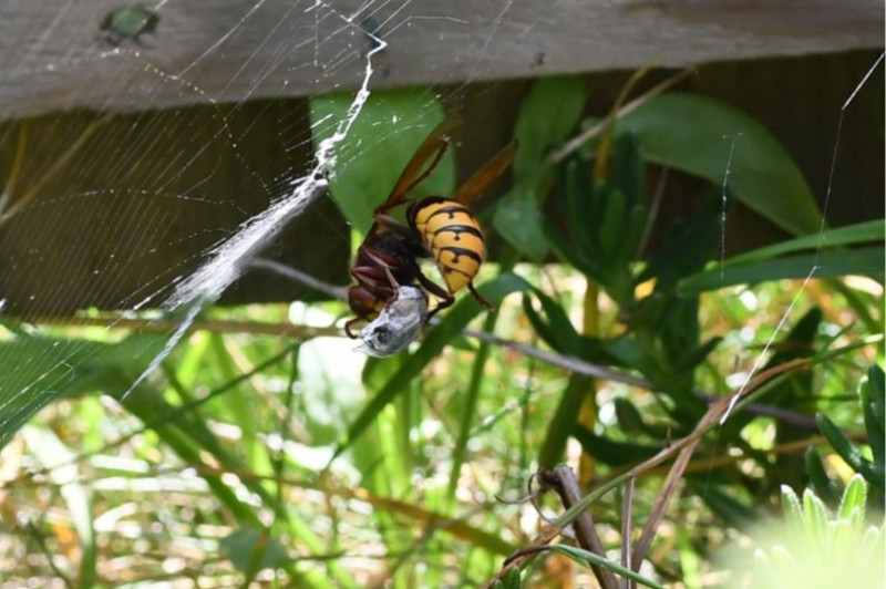 Remarque : Prédation d'une proie présente dans une toile d'argiope bruennichi et prédation d'un hyménoptère en train de butiner